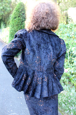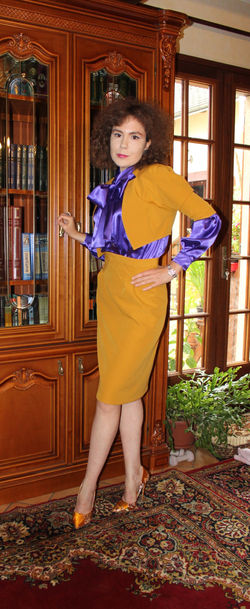 Yellow Skirt Suit with Purple Neck-Tie Blouse